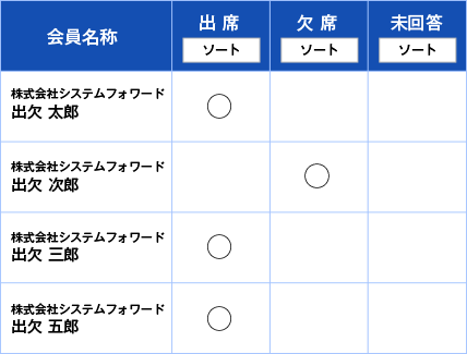 主催者および会員は、会員全員の出欠状況が一覧で確認できます。